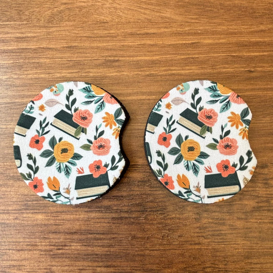 Book Themed Car Coasters Pack of 2, Cup Holder Coasters