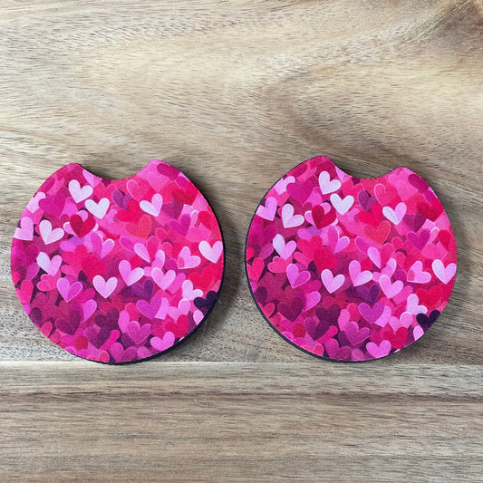 Pink Hearts Cottagecore Car Coasters Pack of 2, Cup Holder Coasters