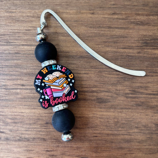 My Weekend is Booked Silver Hook Bookmark with Silicone Beads