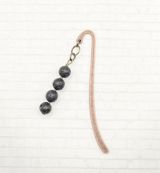 Metal Hook Bookmarks with Black Lava Stone Beads - Brass or Gold