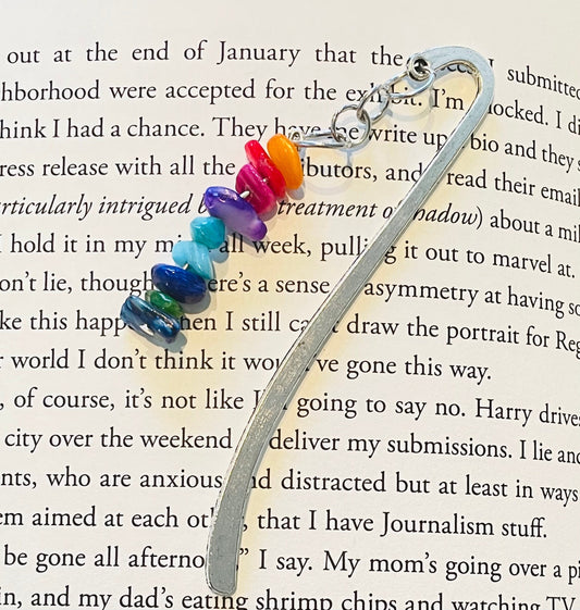 Rainbow Silver Hook Bookmark with Rainbow Stone Beads