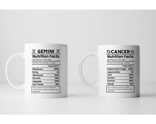 Star Sign Nutrition Facts White Ceramic Mugs 11oz or 15oz - 12 designs Zodiac