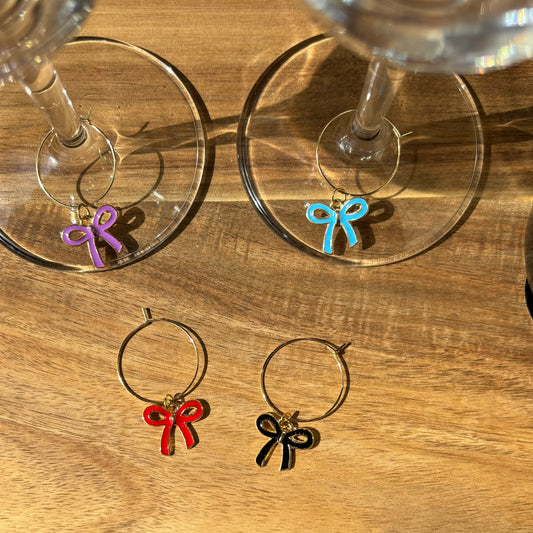 4 Pack Coquette Bow 25mm Wine Glass Charm Rings, Available in Gold or Silver