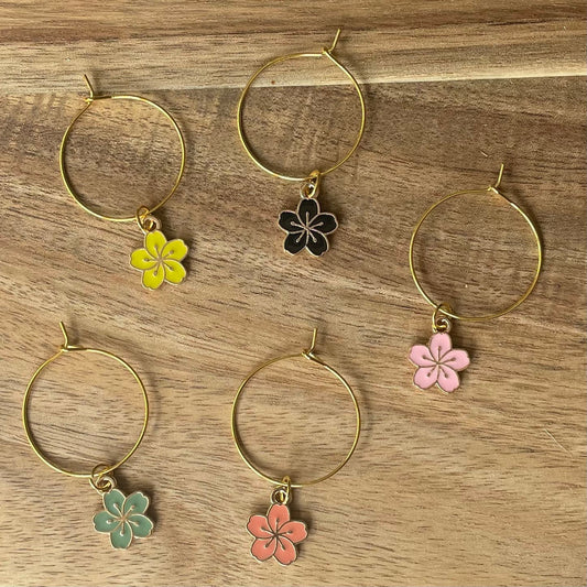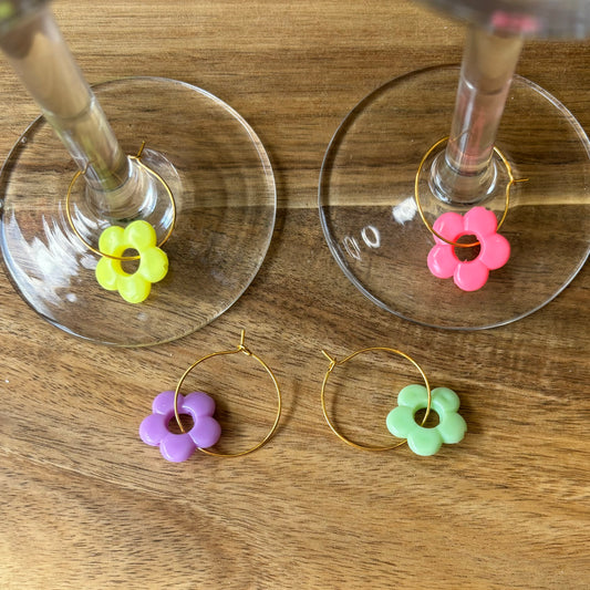 Daisy Silver 25mm Wine Glass Charm Rings with Resin Charm