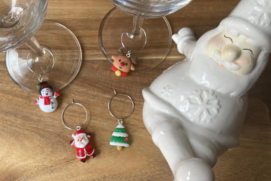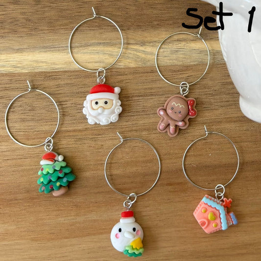 Set 1 Christmas Silver 25mm Wine Glass Charm Rings with Resin Charms
