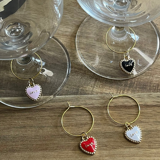 Love and Hearts Themed Gold 20mm Wine Glass Charm Rings