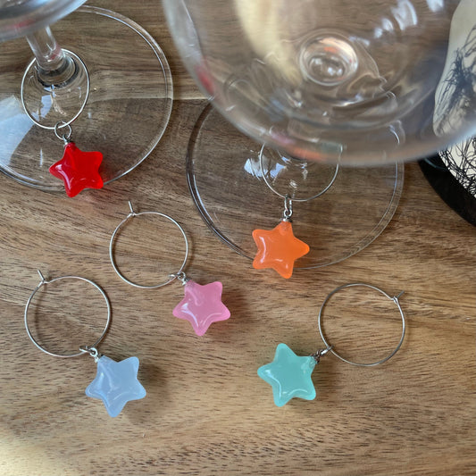 Resin Star Silver 25mm Wine Glass Charm Rings with Resin Charms