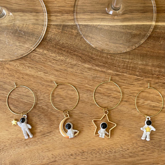 Astronaut Themed Gold or Silver 25mm Wine Glass Charm Rings with Charms