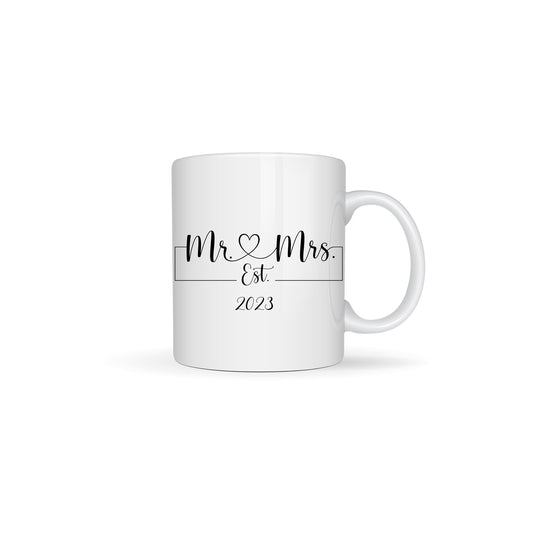 Mr & Mrs Est (Year or Date) Personalised White Sublimated Ceramic Mugs - Wedding 11oz or 15oz