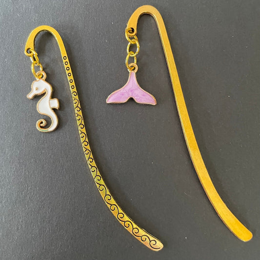 Tibetan Gold Engraved Hook Bookmark with Animal Gold Charms