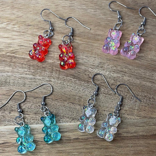 Silver Resin Gummy Bear Hook Earrings with Ball and Coil 18mm