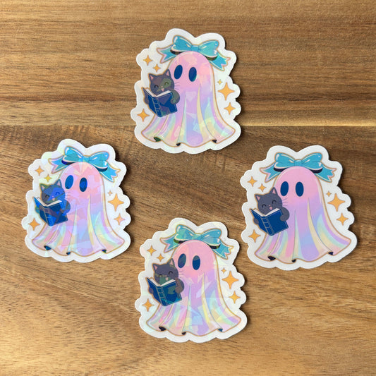 Holographic Ghost Reading Vinyl Die Cut Laminated Sticker (2 Sizes)