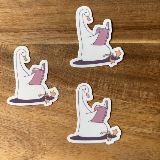 Goose Reading Book Vinyl Die Cut Laminated Sticker (2 Sizes)