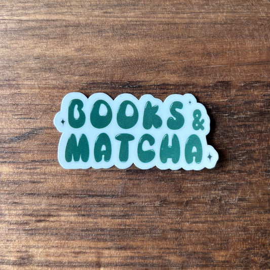 Books & Matcha Vinyl Die Cut Laminated Sticker