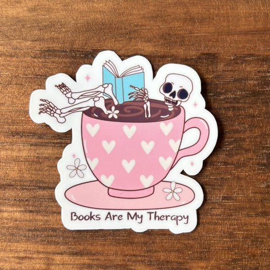 Books are my Therapy Skeleton Vinyl Die Cut Laminated Sticker