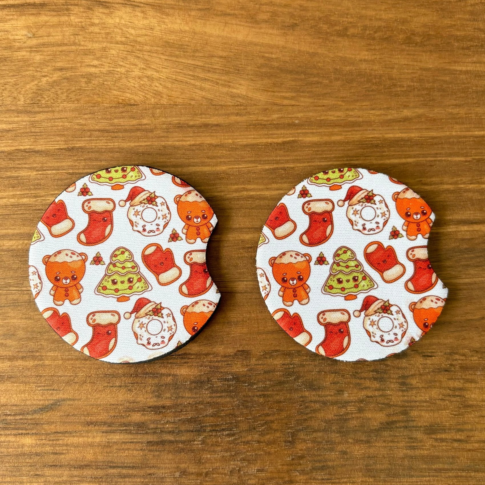 Car coaster measures 70mm round with a finger hole on side and 5mm thick.