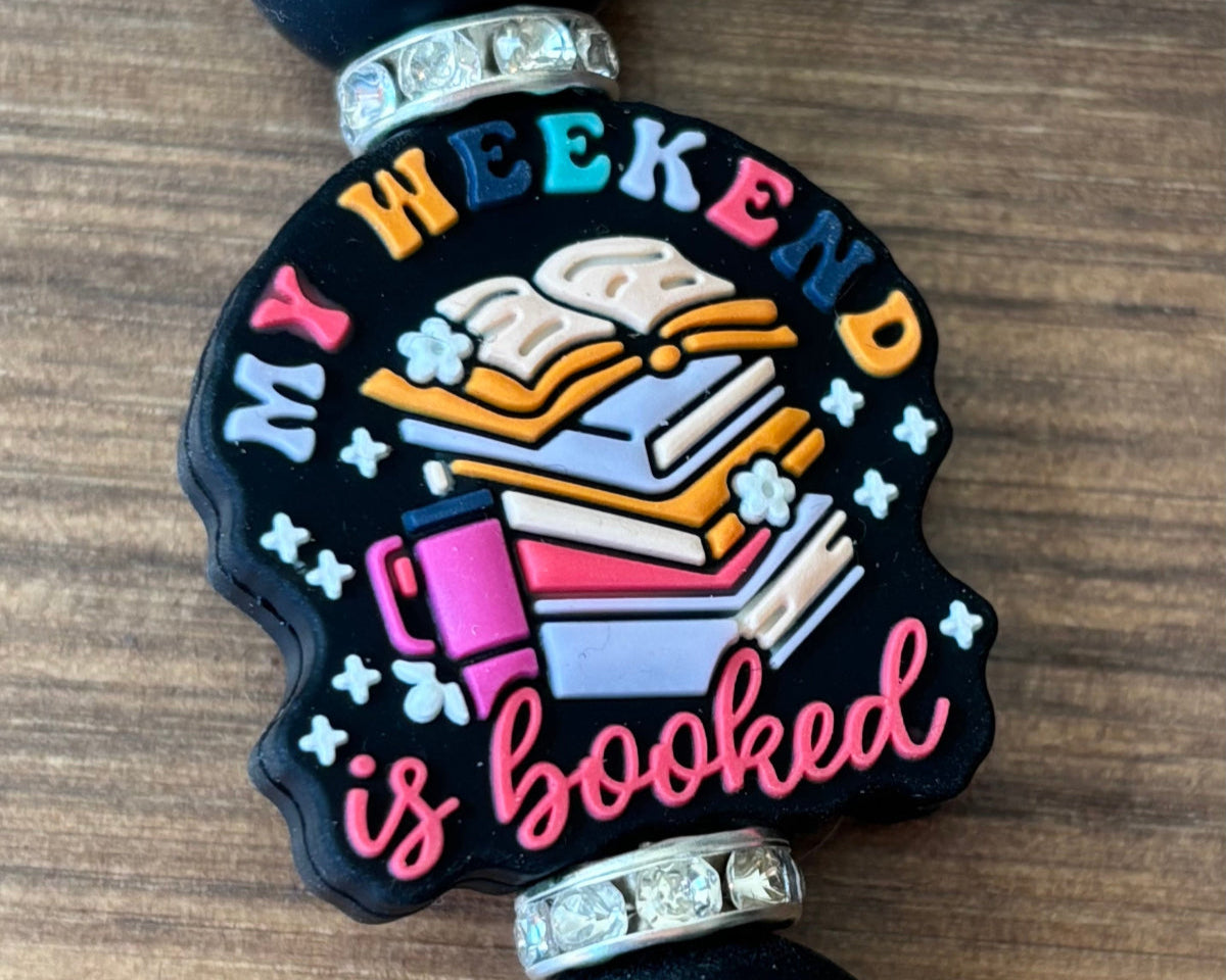 Comes with cute My Weekend is Booked Silicone Charm with 2 Black Silicone Beads and Silver Spacers.