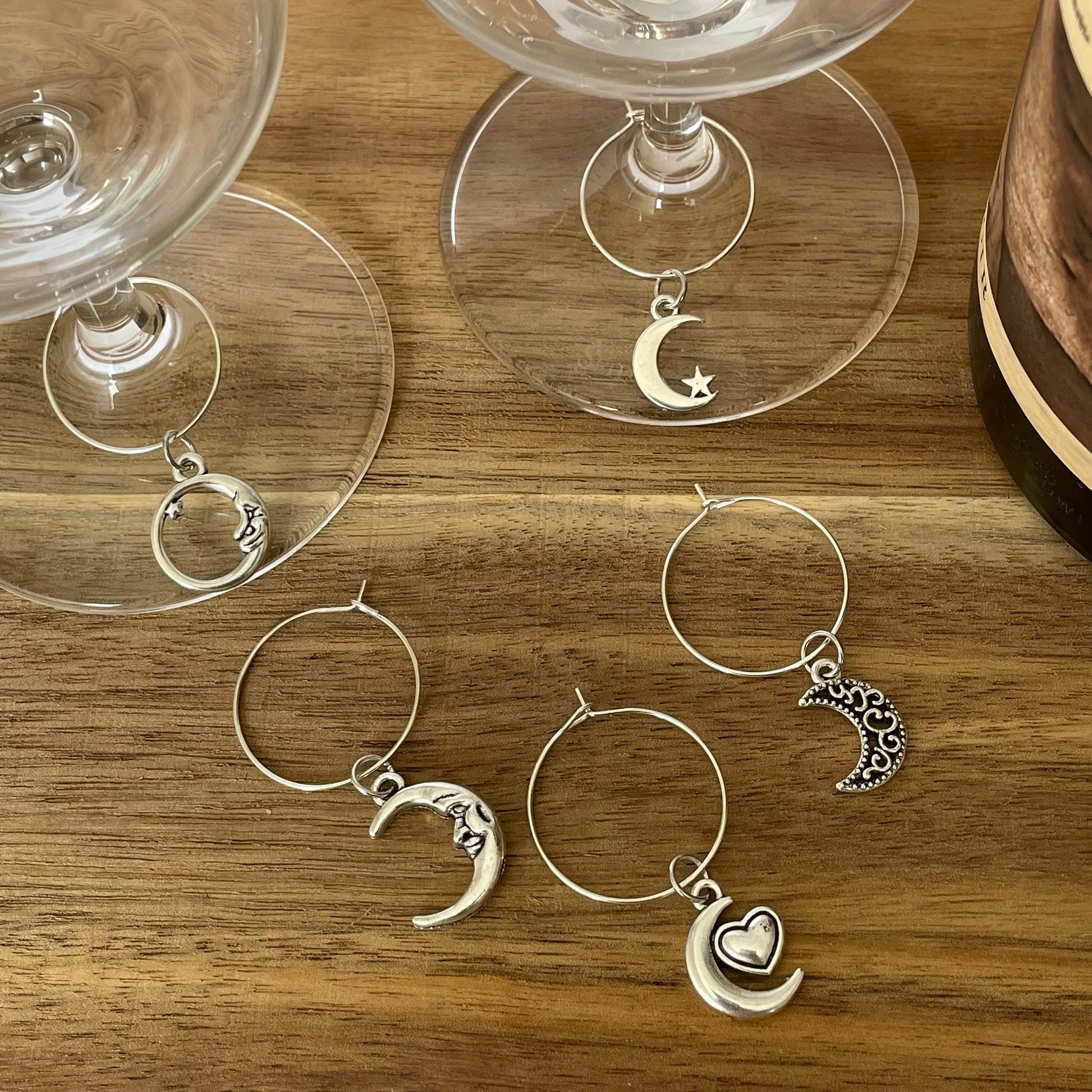 Handmade Silver Wine Glass Charms with Silver Charms.
